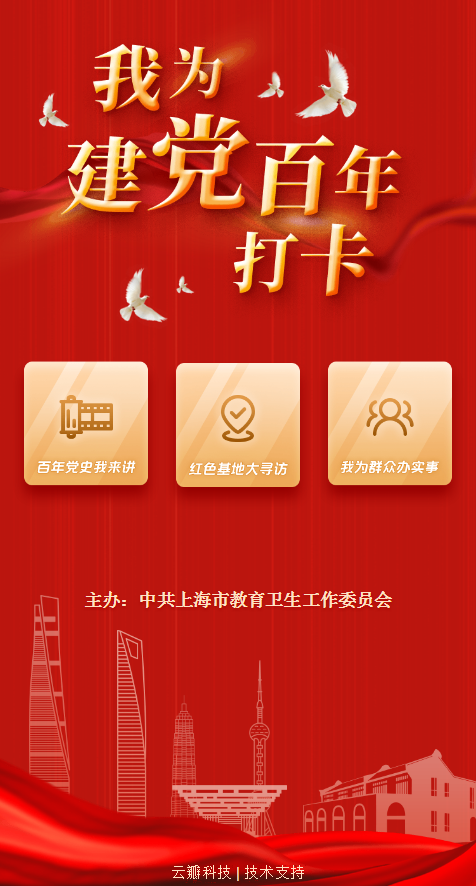 今年中国共产党迎来百年华诞,市教卫工作党委启动“我为建党百年打卡”活动,引领各级党组织和广大党员深刻铭记中国共产党百年奋斗的光辉历程,深刻感悟中国共产党始终不渝为人民的初心宗旨,学习传承中国共产党在长期奋斗中铸就的伟大精神,深刻领会中国共产党成功推进革命、建设、改革的宝贵经验,学史明理、学史增信、学史崇德、学史力行,以实际行动迎接党的百年华诞。活动包括:百年党史我来讲、红色基地大寻访、我为群众办实事等三个板块,采取线下与线上相结合的方式进行。后续,学院各党支部将陆续深入推进“我为建党百年打卡”活动,切实推进“党史学习教育”,为庆祝建党百年营造良好氛围。