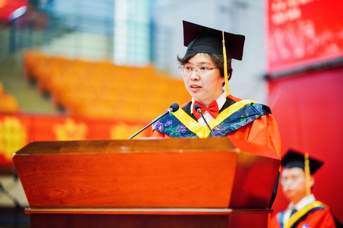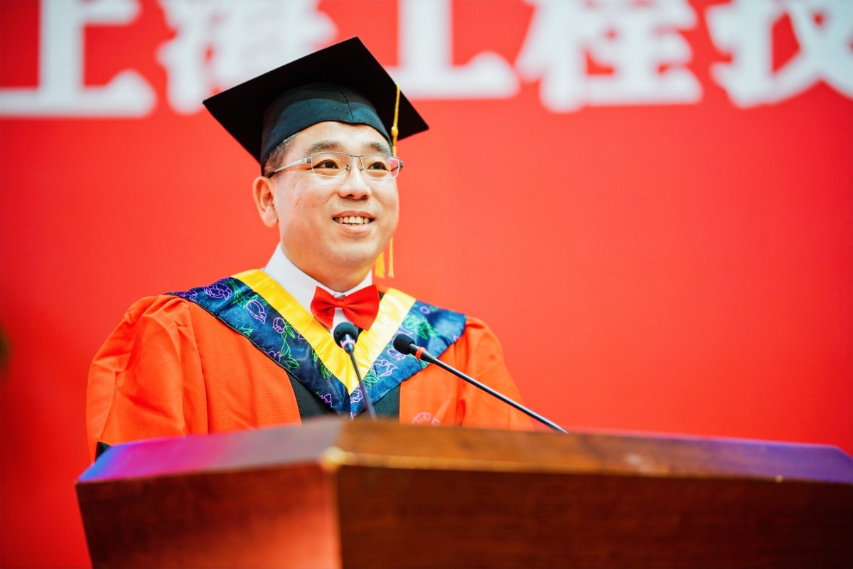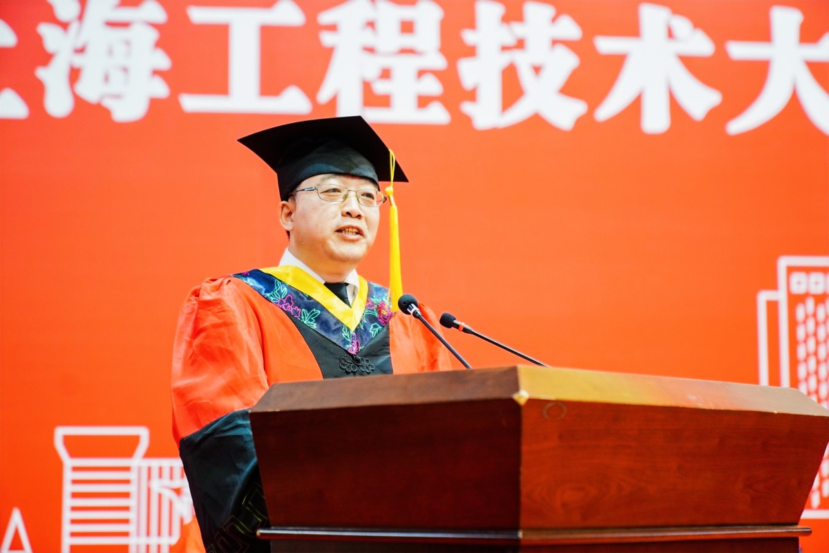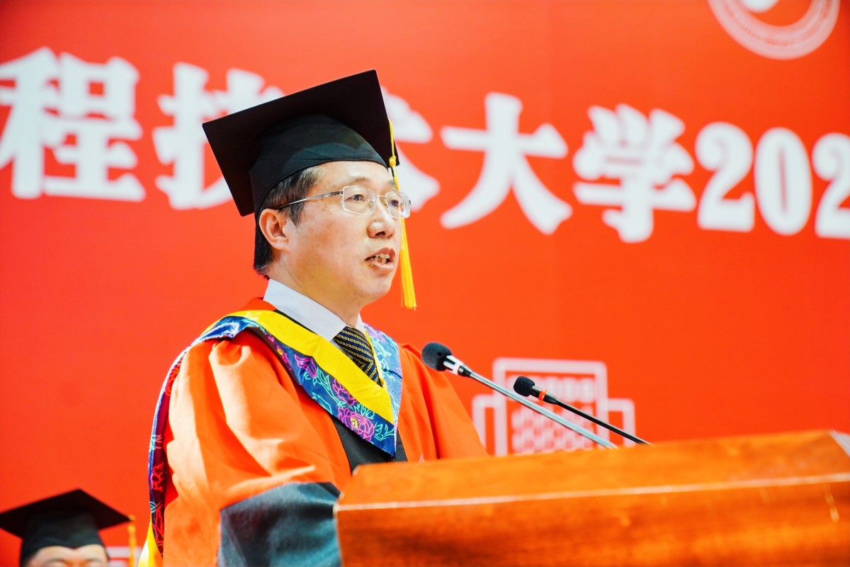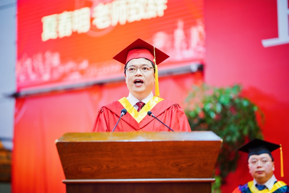 副校长夏春明致辞,寄语毕业生将青春“小我”融入祖国“大我”,方能淬炼出最美的青春,淬炼出充满希望的青春。