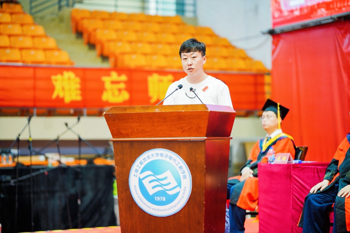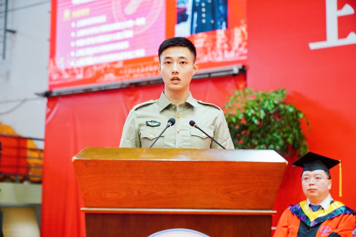 2017级数据科学与大数据专业退伍学生、预备党员郭珅佑代表全体毕业生发言;