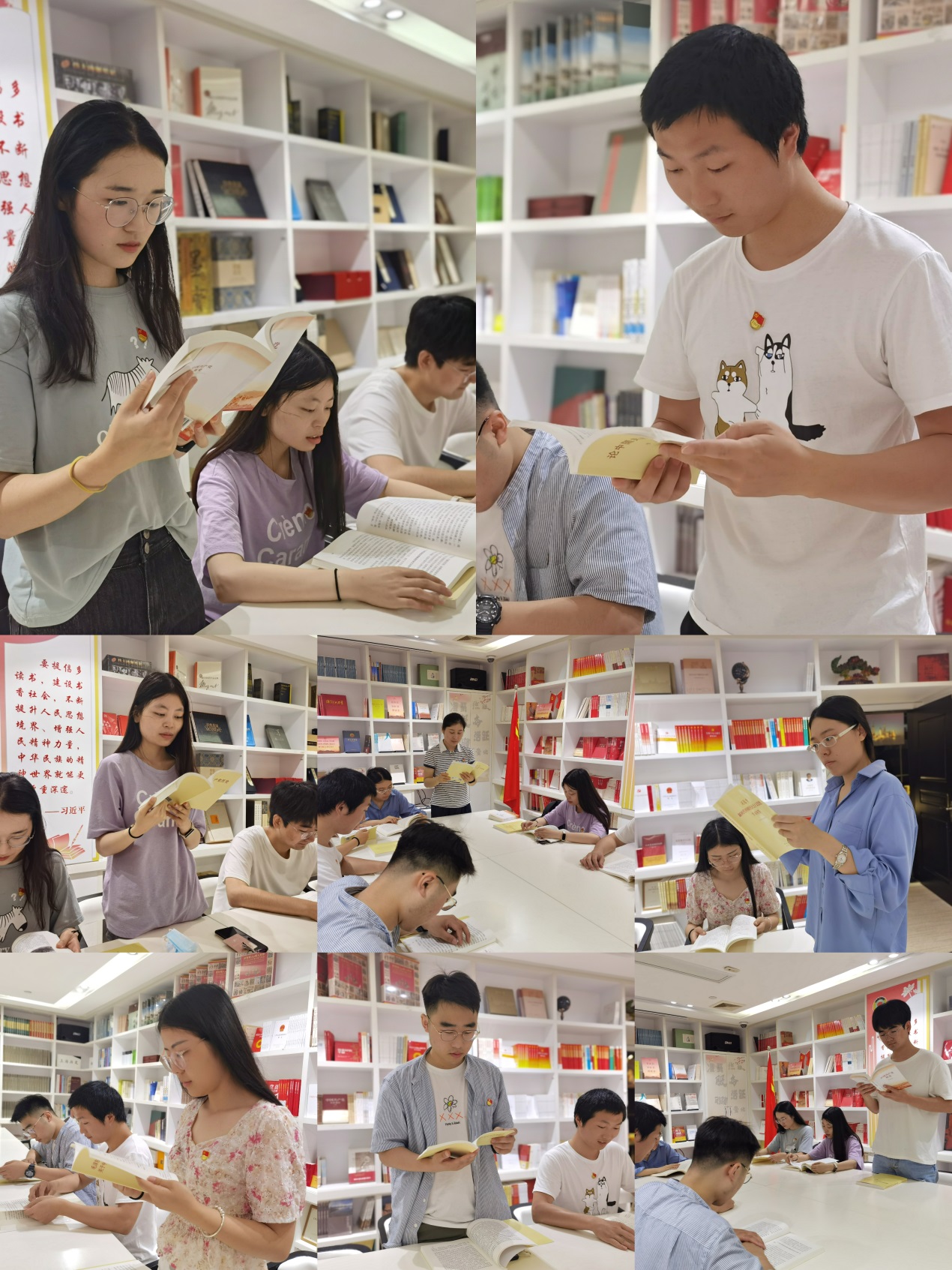 在钟书阁党建活动室,各位党员还挑选了红色书籍进行阅读。例如《初心、使命——基层党员学习笔记》、《习近平关于“不忘初心、牢记使命”论述摘编(公开版)》、《平易近人:习近平的语言力量》等图书,经过深入学习,大家结合自身的学习和生活经历一一发表了自己的读书感悟。