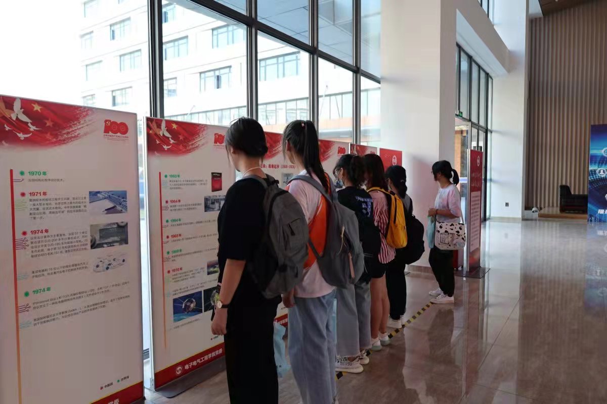 《回眸百年历史 汲取前进力量》专业展通过20张展板向新生开展专业启蒙,智能机器人讲解员成为现场最“活跃”的志愿者,它全天不休,穿梭于新生人群之中,引导、讲解、互动、合影,智能机器人依靠自己的“智慧”、“体力”和“颜值”征服了新生,它围绕计算机、电力、自动化、通信几个专业的发展历程,结合学院近年的发展成果,从中外两个维度,将百年专业发展进行了详细的讲解;迎新点的三台智能机器人夺人眼球,他们伴随着动感的音乐变幻着各种舞姿,模仿迈克杰克逊等舞者的动作和体态,让新生叹为观止、兴趣十足。