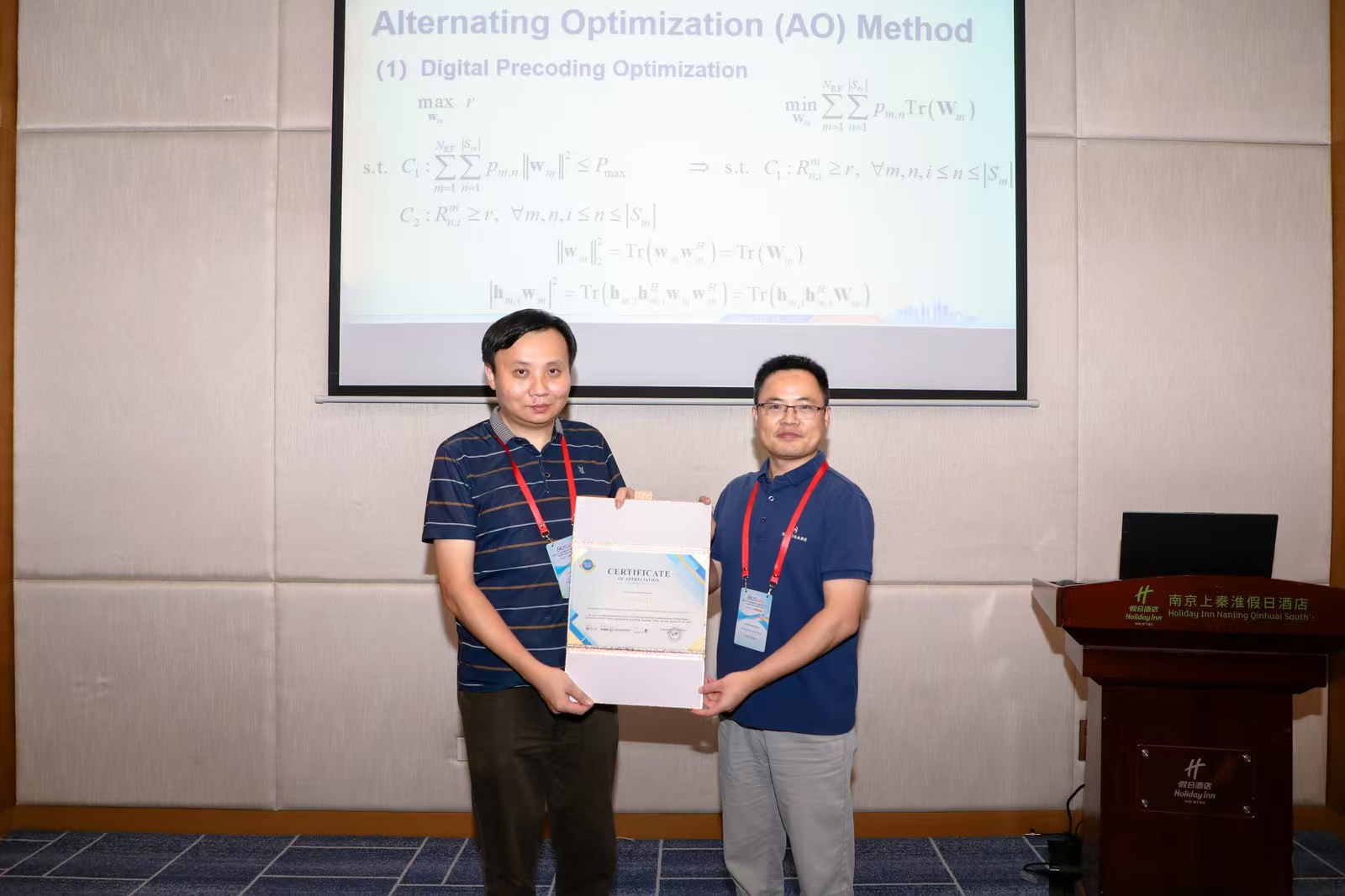 电子信息系的马天鸣副教授应邀担任本次大会的宣传主席(Publicity Chair),负责大会的对外宣传工作以及邀请国内院校从事通信方向的知名学者担任大会的Invited Speaker(先后邀请到了上海海事大学信息工程学院副院长徐艳丽教授、华东师范大学通信与电子信息学院的郭坤研究员以及南京航空航天大学电子信息工程学院的冯斯梦副研究员),并于08.23前往南京参会,亲自做了Invited Speech,同时与来自南京大学、华中科技大学、山东大学、华东师范大学、西安电子科技大学、南京航空航天大学、重庆邮电大学、鹏程实验室等高校的师生进行广泛交流和学术探讨。
