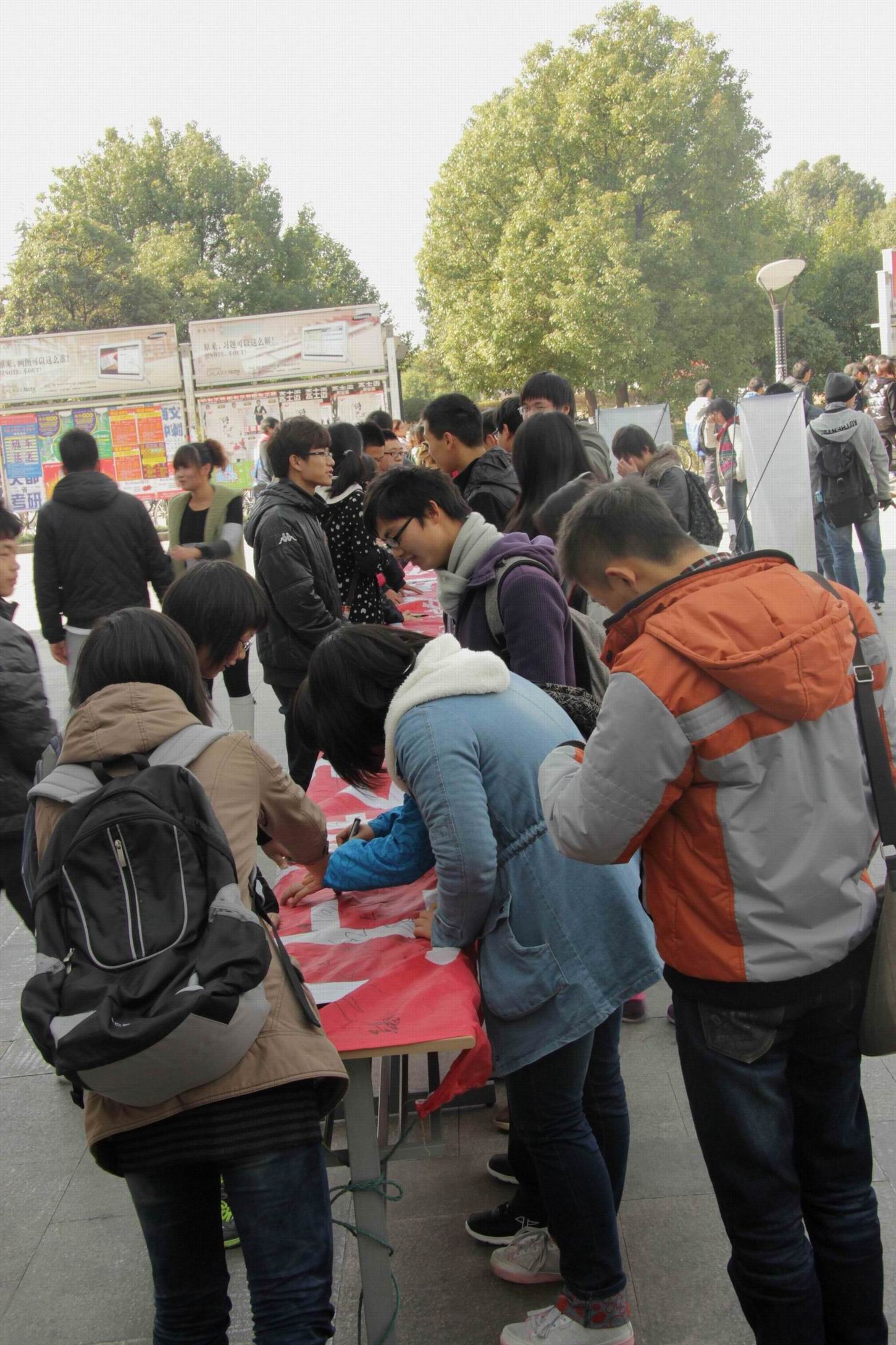 ![]() 这次诚信教育月系列活动包含“图书漂流”好书共享、“诚信在我身”的宣传片制作、“诚信”格言征集、诚信演讲比赛、诚信资助征文比赛、诚信倡议签名等多项活动。旨在培养大学生的诚信意识、诚信行为、诚信品质。 当横幅在大食堂展开时,路过的同学们络绎不绝,当他们得知正在举行的是有关“诚信”的活动就主动来到横幅前,拿起工作人员准备好的笔,在横幅上写下自己的名字。同学们的热情高涨,有的还叫来自己的同学,纷纷在横幅上签名。不一会儿,横幅就已被大家的签名填满。同时,为了宣传工作人员还以发传单的方式与签名相配合,让更多的同学关注此项活动,更重要的是让同学们更加了解“诚信”对我们大学生活以至未来人生的重要性。若是每个同学都将“诚信”二字牢记在心,这个校园会变得更加和谐。 |