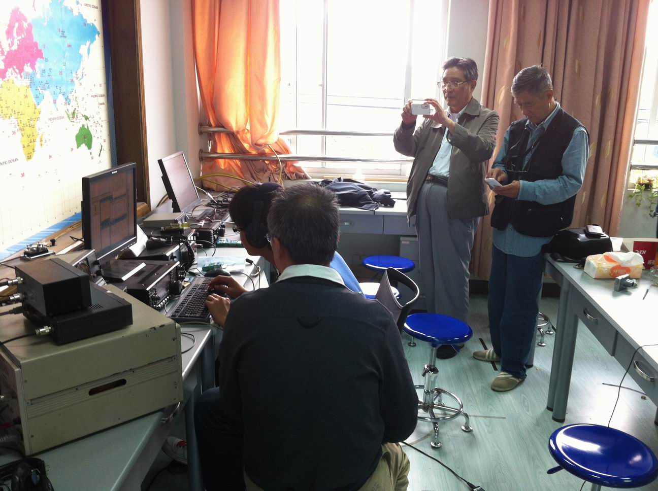 ![]() CQ WW DX Contest又称CQWW远距离世界比赛,是由美国CQ杂志社举办的。这项比赛在业余无线电界中影响最大,参与人数最多。今年的比赛时间为10月27日UTC0:00~28日23:59(北京时间10月27日上午8点~29日上午7:59),比赛持续48小时。 比赛现场,张力立同学一直值守在短波台前与世界各地的业余无线电爱好者们进行通联。在通联过程中,《业余无线电通信》主编、原中国无线电运动协会副秘书长、解放战争渡江战役华东军区野战部队报务员、著名业余无线电专家童效勇先生,上海第一个集体业余无线电首任台长, 上海市无线电运动协会荣誉委员、解放战争渡江战役华东军区野战部队报务员、著名业余无线电专家徐儒先生就如何提高QSO(通联)效率等方面为值守的张力立提出了不少宝贵性的意见。徐儒先生指出,在功放有限的情况下,电台功率压不过一些欧洲电台时,要及时调整频率,不要在同一频率进行长时间通联,这样才能够在最短时间内通联到更多的电台。下午2点,宝山区少科站站长吴强也来到比赛现场,对参加此次比赛的爱好者们表示感谢,并关心慰问了值守比赛的张力立同学与一同值守的其它业余无线电爱好者。 此次观摩活动让社员们理论结合实际,从简单的PPT理论学习转到实战观摩。由于无操作证无法进行上机操作,社员们表示将抓紧学习考出业余无线电台操作证书,争取早日上机进行操作。 |