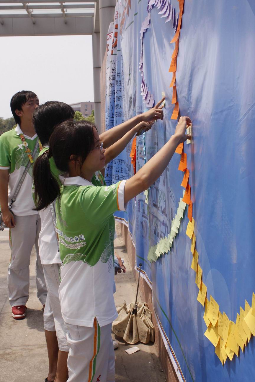 经过了多方准备,以及对志愿者祝福话语的收集, 守护天使活动是AB片区激励计划的重要环节,通过对志愿者随机配对,结成一对一的守护天使,即在AB片区448名志愿者中随机抽取224对互不相识的志愿者,他们彼此为对方的守护天使,每日可在天使墙上进行留言,互相勉励、互相鼓劲。天使墙为志愿者们搭建互动交流、同心协力的良好平台,让所有志愿者感觉到有一位天使守护身旁。 我们可以看到天使墙上巨大的“爱心天使”图案是由志愿者们用不同颜色便签纸写下寄语,粘贴而成的。每一张纸都承载了一位志愿者作为“天使”为他所守护的人带去的祝福,也承载着上海工程技术大学世博志愿者们团结一心、共同奋斗在世博志愿服务第一线的力量。 志愿者们也希望这项活动能够在一批一批的志愿者之间代代相传,同时也开始主动、积极寻找自己守护天使。我们AB片区的守护天使活动将在志愿工作的最后一天揭晓,也衷心祝愿每一位志愿者都能找到自己的守护天使,同时也期待他们相遇时的欢颜笑语。 |