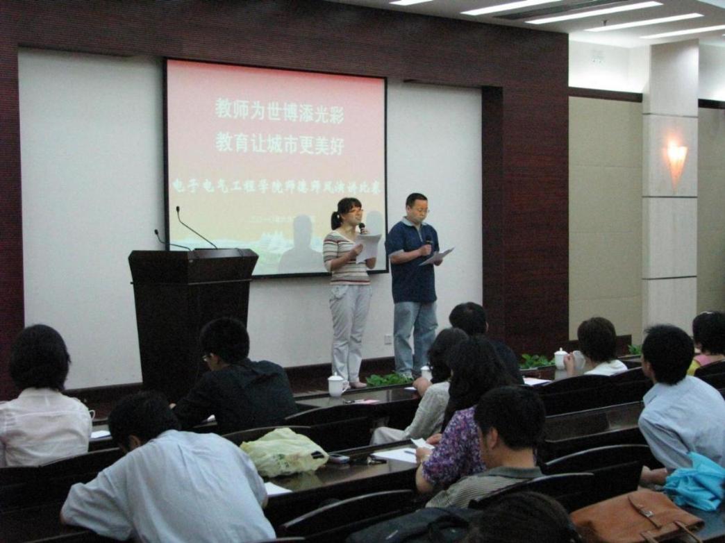 为谱写世博华美的乐章,迎接中国共产党89岁的生日,6月25日下午在图文信息中心第三报告厅,yl6809永利官网隆重举行师德师风演讲比赛。校工会韩玉德老师参加了此次活动,学院院长刘启中、党总支书记茅蕾、副院长张丽萍、党总支副书记王东阳以及全体教师出席了演讲比赛,各系室支部书记担任此次比赛的评委,各系室教师代表参赛。 比赛中,教师代表们运用各种演讲技巧,或抑扬顿挫,或慷慨激昂,自然的真情流露感染了在场的师生,他们的演讲勾画了教师们忙碌的身影,凸显了教师在世博舞台上的突出成绩,体现了教师身上肩负着教育使命的重任,以及为学生营造良好的学习环境、培养创新型技术类人才、激发学生的创造力所作出的努力。 经过评委们的认真打分,本次师德演讲比赛中学院学生工作办公室梅元媛获得一等奖;自动化系王宇嘉、陈小龙、计算机中心张晓梅、计算机系黄润才获得二等奖;中心实验室朱文立、电气工程及其自动化张菁、电子信息工程系王永琦以及代表电子基础教研室的陈万辉获得三等奖。 最后,学院党总支书记茅蕾讲话,她希望教师们对自己的岗位继续保持高度的责任意识,牢记“教育为本,以德为先”,弘扬优秀教师的先进事迹,全面推进师德师风建设,做到爱岗敬业,为人师表,做教书育人的楷模;锐意进取,追求卓越,作自主创新的先锋;求真务实,严谨治学,做高尚学术道德的榜样;希望大家发扬团队精神,为学院内涵建设和科学发展贡献自己的力量,为学院的教育事业再建新功。 |