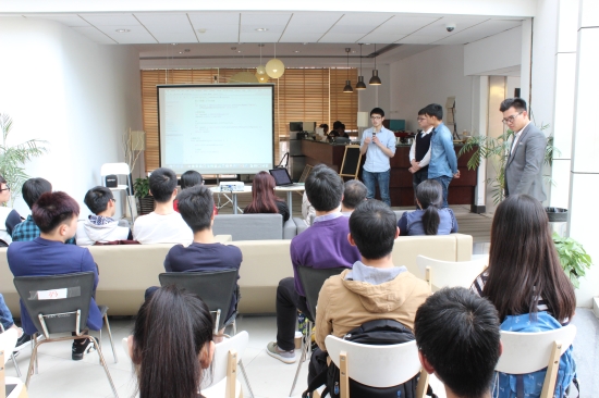 随后的课程展示环节,五组同学对自己的课程作品分别从作品的功能、构成、实现方法和遇到的问题四个方面展开,并总结了他们在学习和实践过程中的一些感悟。苹果公司的iOS培训师高坤朋老师作为课程主讲教师对每组进行了点评。苹果大中华区教育发展总监陈佳惠女士对课程展示环节进行了总结,她对我校学生的综合素质表示了高度赞扬,随后通过一个视频对iOS移动软件开发的前景进行了展望,介绍了苹果公司iOS开发人才培训计划的总体布局,最后她希望参加此次iOS开发课程的同学能够学有所得、学有所成、学有所用,不辜负学校和苹果公司对同学们的期望。