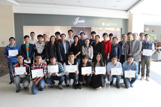 证书颁发仪式随后进行,此项证书是苹果公司在全球范围内设立了第一批iOS开发课程结业证书,在全球范围内适用,含金量极高,可以大大提升学生就业的竞争力。本次课程共有38名同学获得此项证书,由苹果公司四位嘉宾依次为学生颁发。最后,所有出席此次活动的学院领导和老师、苹果公司的领导以及在场的学员共同合影,用影像留下这值得纪念的瞬间。