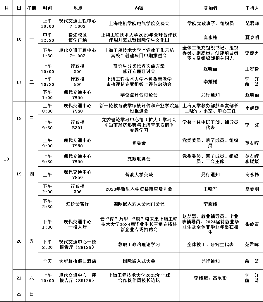 学院第6周活动安排(2023年10月16日-2023年10月22日)