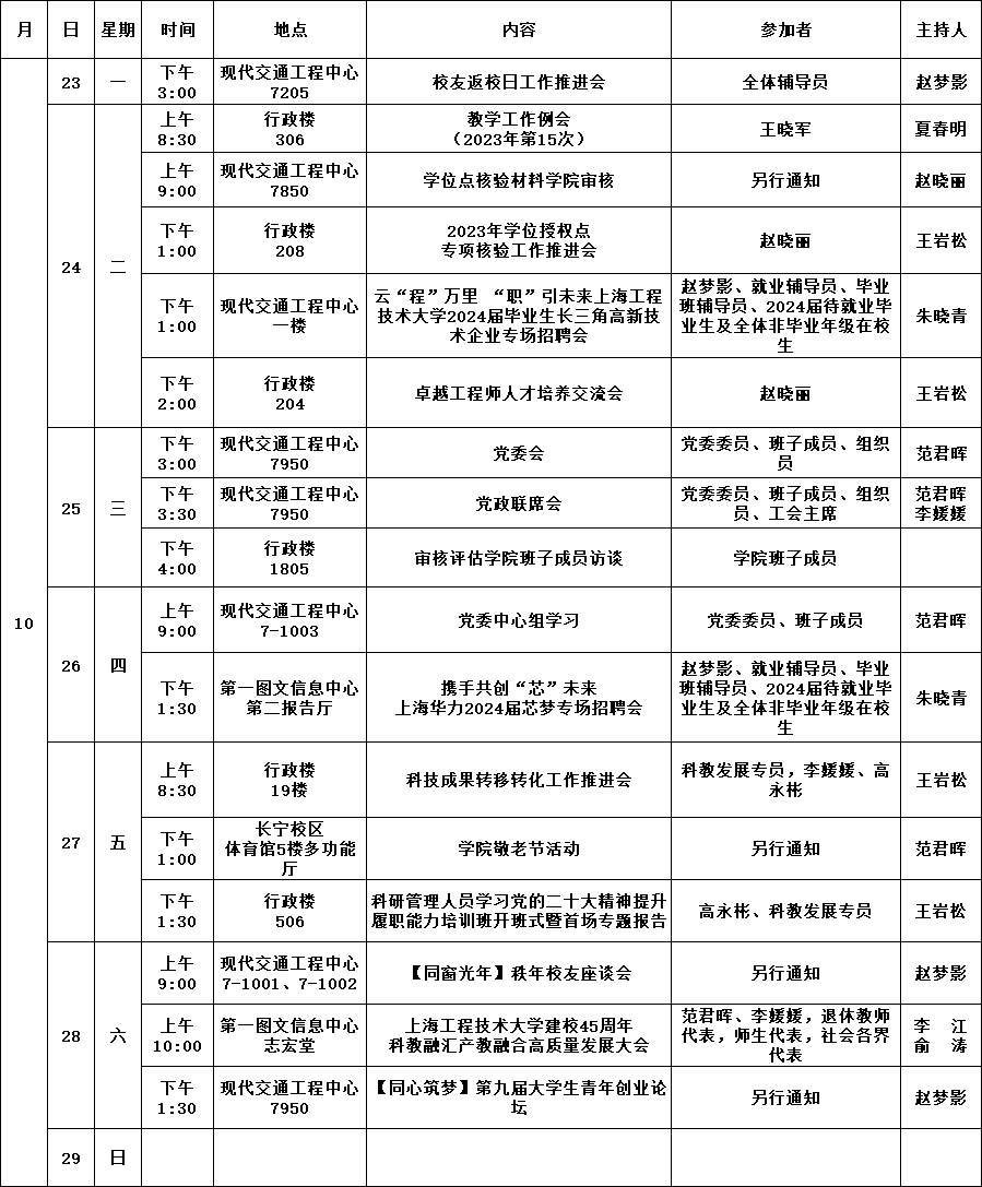 学院第7周活动安排(2023年10月23日-2023年10月29日)