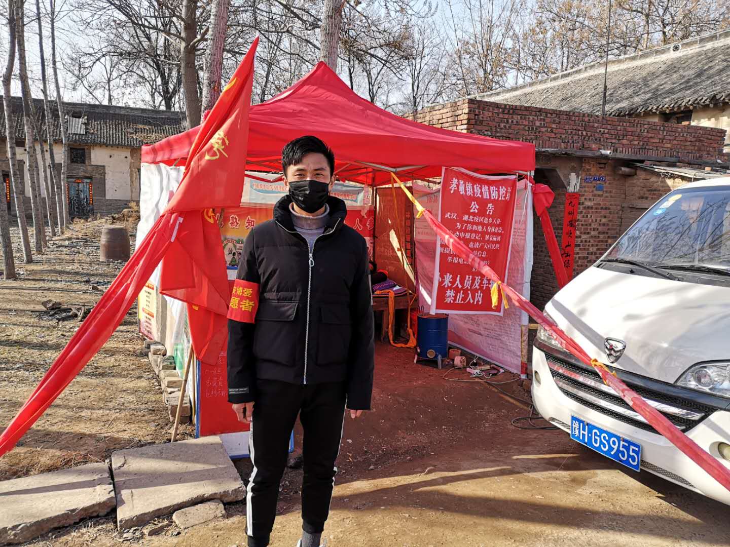 “面对这次突发疫情,作为党员,要树立大局意识,增强责任心,加强宣传,奋斗在防疫的一线。不忘初心,牢记使命,抗击疫情,我们党员在行动!”电院研究生第四党支部党员宋紫阳,响应村委会的号召,主动加入到家乡安徽省蚌埠市固镇县杨庙乡任湖村的疫情防控志愿工作中,每日8:00-18:00之间,在党员示范岗负责道路设卡检查、紧控人员流动,做好相关信息登记,为抗击疫情、保护村民健康贡献自己的力量。!