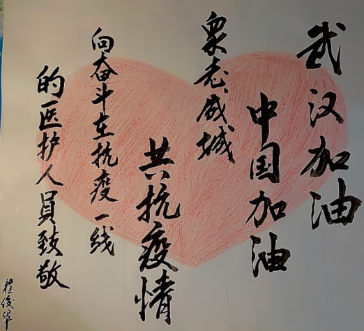 湖北省武汉市发现并蔓延的新型冠状病毒感染肺炎疫情牵动着全国人心,电院广大师生们守望相助、众志成城,坚决贯彻习近平总书记关于新型冠状病毒感染的肺炎疫情防控工作重要指示精神和学校关于疫情防控的工作部署,他们有的主动请缨参加疫情防控志愿者工作,更多的师生们都积极响应国家号召在家自行隔离,除了关注疫情动态,大家自发参加了“我为武汉加油助威写祝福活动!”以书法、钢笔字、漫画、诗歌、海报或手持自制祝福文字、卡片的照片等送武汉,通过暖心手写(绘)祝福,透过文字或图片提供力量,把祝福带给在抗疫第一线奋战的医护人员和在武汉的全体同胞,凝聚众志成城抗疫情的强大力量为武汉加油!