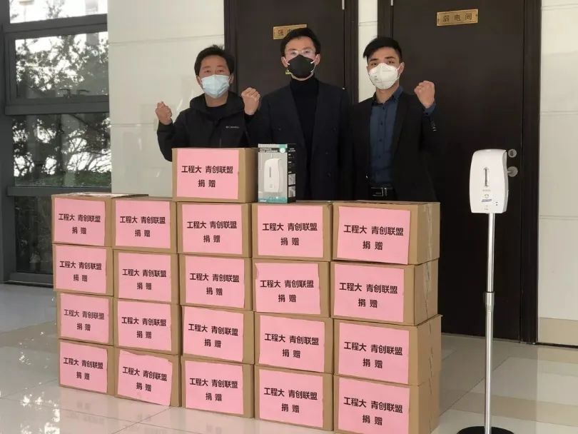 今年疫情期间,邓洋洋还第一时间联系到学校,表示想号召创业校友共同为母校捐赠紧缺的防疫物资。几经周折,通过邓洋洋和其他青年创业联盟代表杨中魁、胡杉、刘林福、向建、吕俊志、詹鑫、陈道柏、马也飞、王昆等校友的共同努力,终于为母校筹集到了额温枪、消毒器、医用外科口罩、酒精棉等大批物资,并第一时间送达母校。